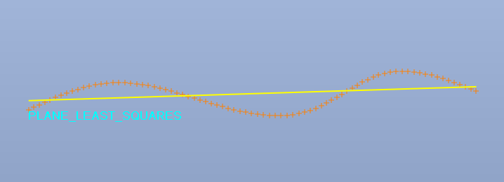 A Least Squares fit minimizes the average squared error of all of the data points. It may be that none of the points are actually on the calculated feature. This is the standard fit method for most instances.
