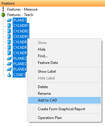 Selected features will be added to the CAD model at this time. Measured and defined features can be deleted afterward
